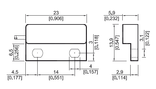 RES02为磁场驱动的干簧接近开关,适于螺丝安装。此传感器应安装于一个固定的表面,驱动磁铁安装于活动的表面,靠近或远离磁场将决定干簧开关的吸合和断开。