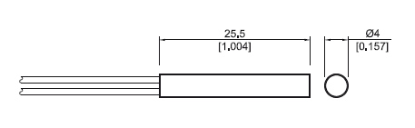 RES05为磁场驱动的干簧接近开关,圆柱形外壳直径为4.0mm,外壳内连接线缆。此传感器应安装于一个固定的表面,驱动磁铁安装于活动的表面。靠近或远离磁场将决定干簧开关的吸合和断开。